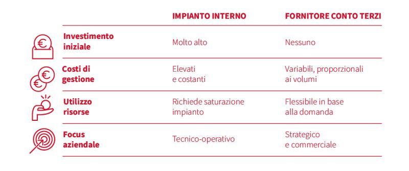 In questo modo, il cliente può rimanere concentrato sul proprio core business, riducendo il rischio operativo e legale di gestione di un impianto.