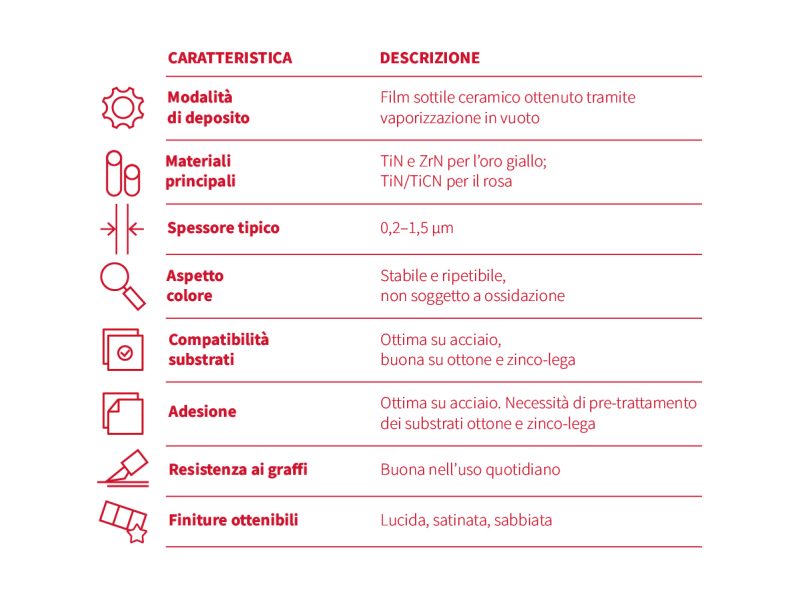 PVD oro: caratteristiche, performance e tonalità del trattamento superficiale